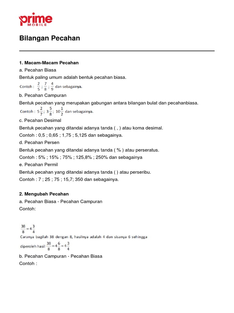 Mengubah Pecahan Campuran Ke Biasa Desimal Persen Matematika Dasar Sd