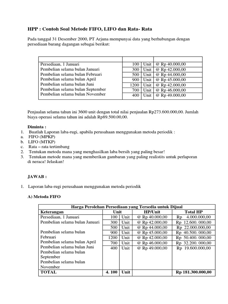 Contoh Soal Metode Lifo Fifo Average Dan Hpp Dengan 2