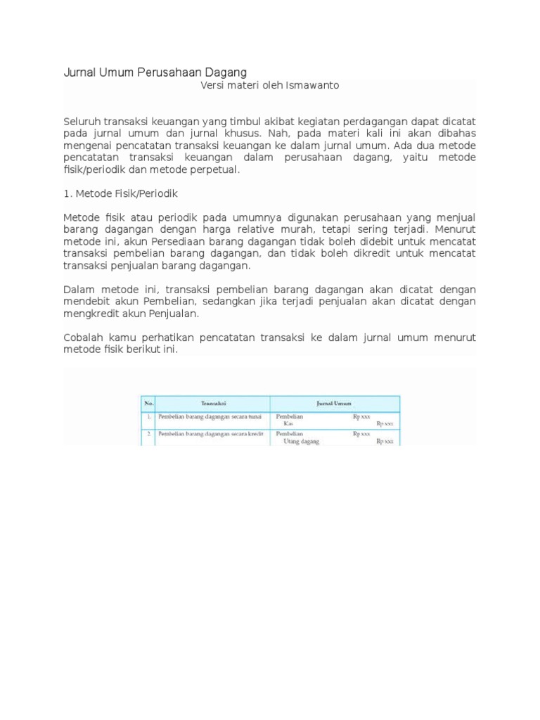 Doc Contoh Transaksi Dan Jurnal Perusahaan Dagang Metode