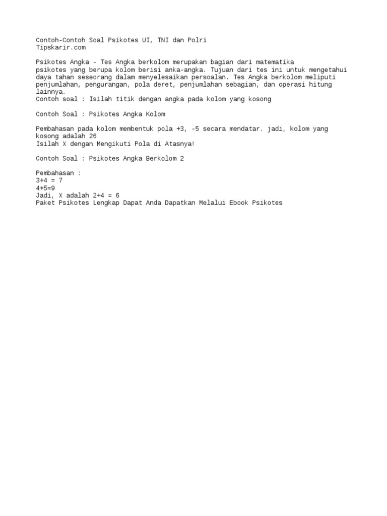 Contoh Soal Psikotes Deret Angka Dan Jawabannya Pdf