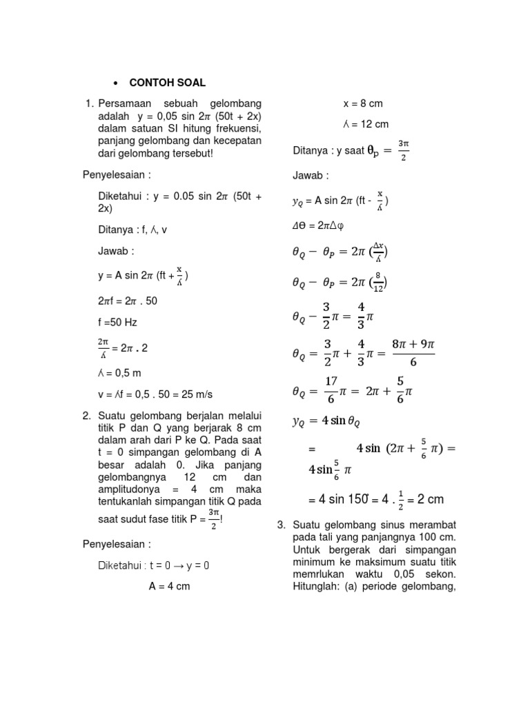 Contoh Soal Persamaan Simpangan Gelombang Berjalan. Dengan demikian, persamaan kecepatan gelombang berjalan adalah persamaan yang diturunkan dari persamaan simpangan. Caranya sangat mudah sobat hanya perlu.