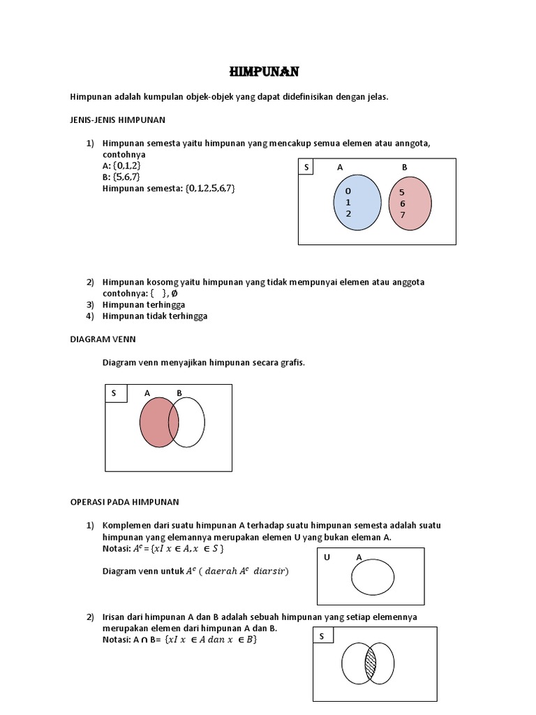 Hubungan antarhimpunan meliputi irisan, gabungan, komplemen himpunan, dan selisih himpunan.