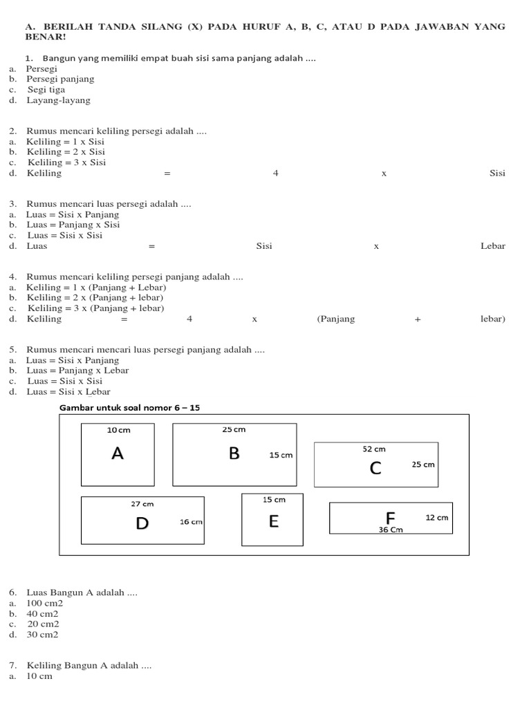 Doc Contoh Soal Dan Pembahasan Tentang Bangun Datar Segi Empat Berupa Persegi Dan Persegipanjang Muhamad Irawan Academia Edu from 0.academia-photos.com Untuk mencari keliling persegi gunakan persamaan: Jadi, keliling persegi panjang itu : Berikut ini contoh soal bangun datar yang mudah untuk dikerjakan berbagai soal bangun datar dengan cepat dan benar, simak pembahasannya.