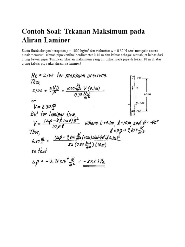 Contoh Soal Viskositas. Viskositas merupakan pengukuran dari ketahanan fluida yang diubah baik dengan tekanan maupun tegangan. Μ = 0,313 cp = 0,00313 ns/m2.