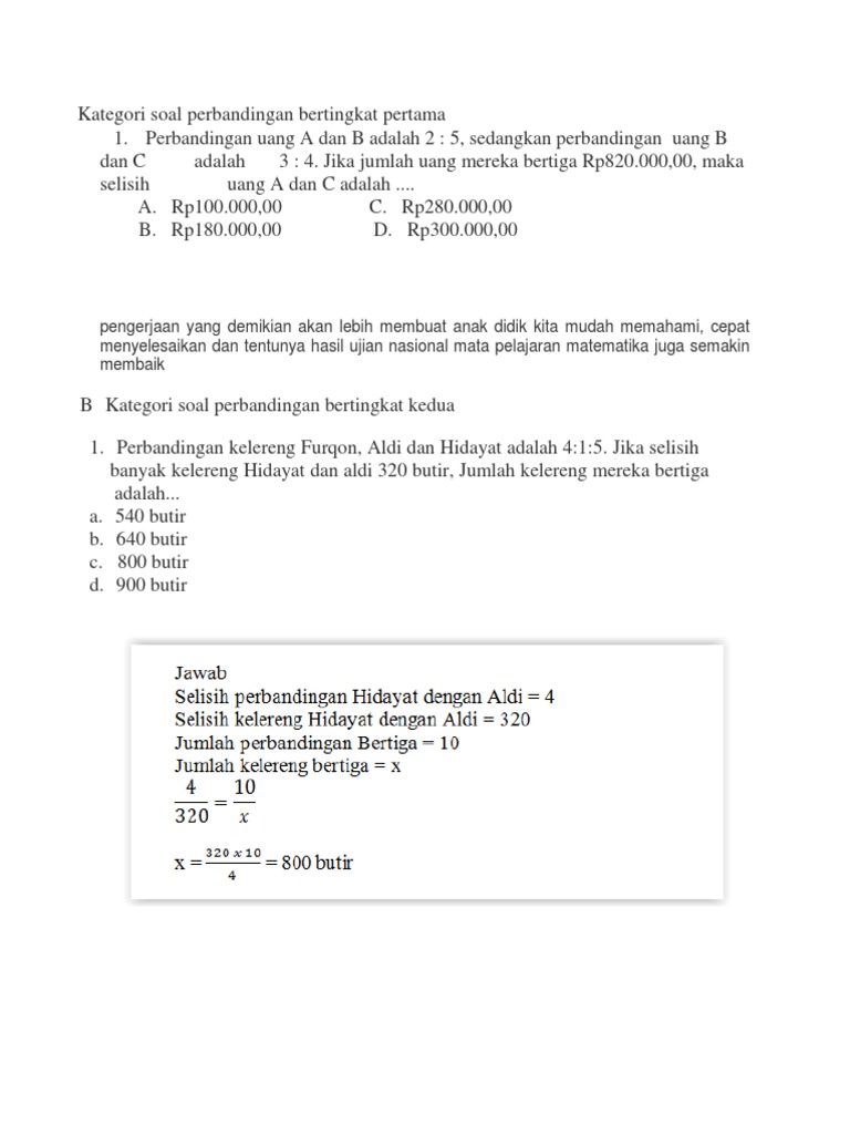 Contoh Soal 3 Perbandingan. Soal perbandingan level kognitif penalaran menguji kemampuan peserta didik menggunakan nalar yang berkaitan dengan materi perbandingan. Home perbandingan #3 contoh soal perbandingan jika diketahui jumlah kedua.
